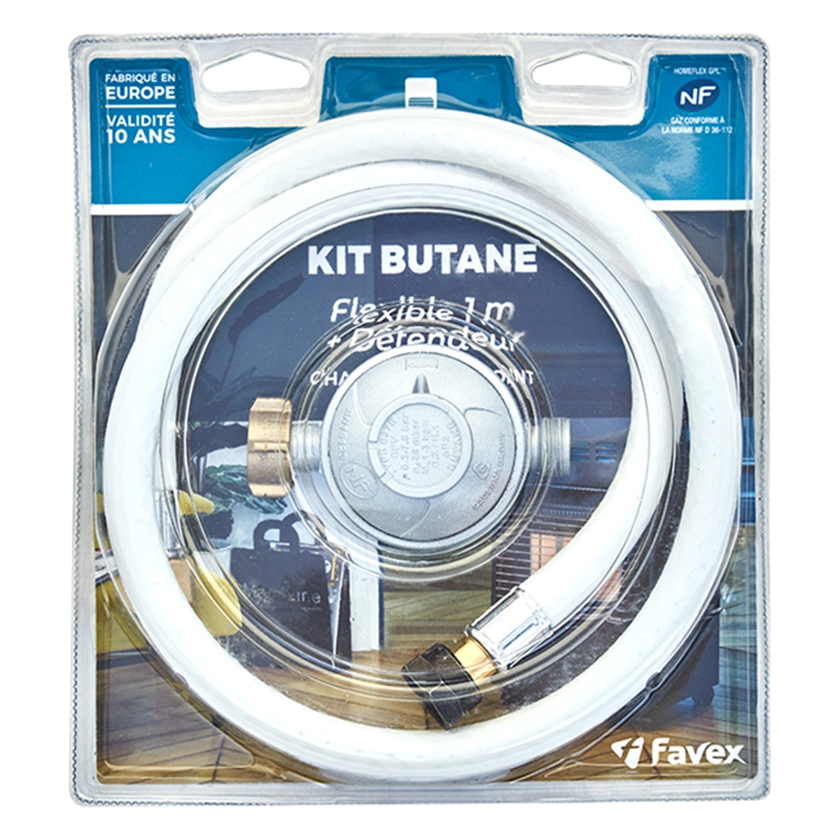 Kit CHAUFFAGE D’APPOINT butane détendeur + raccord tétine + 1 tube souple + collier serrage